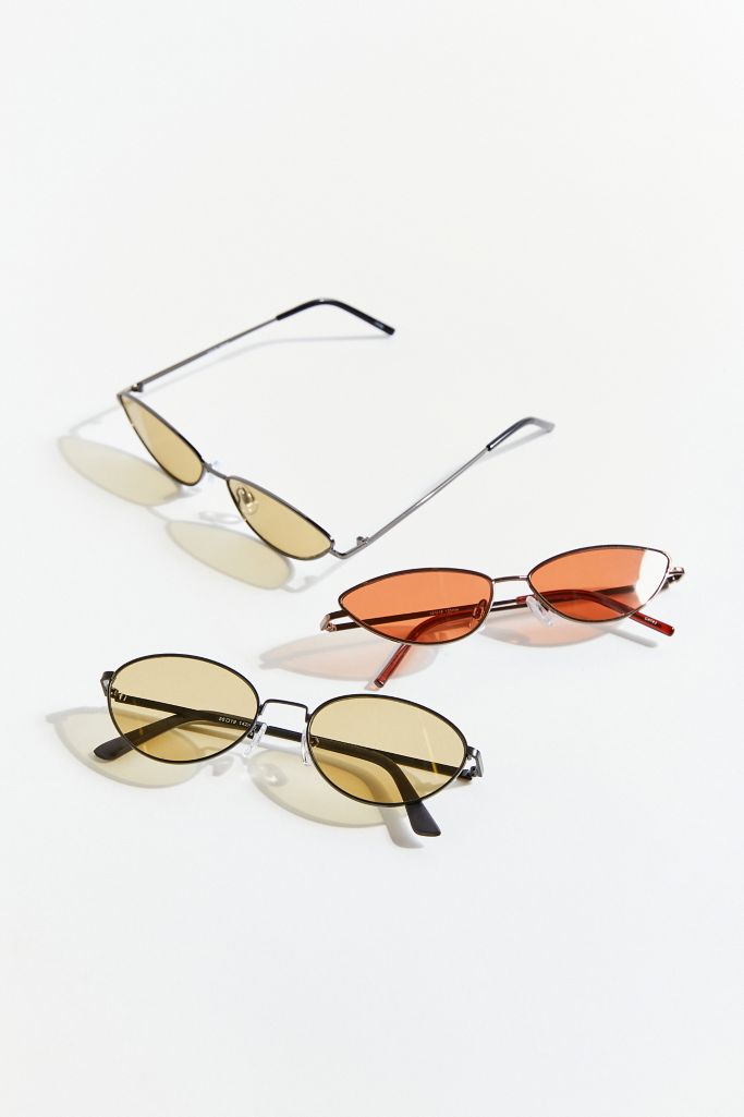 For light and easy styling, the Palmer sunglasses are designed with a metal wire frame and oval lenses with a slight tint. Fitted with silicone nose grips and coated tips. 100% UV protection.
