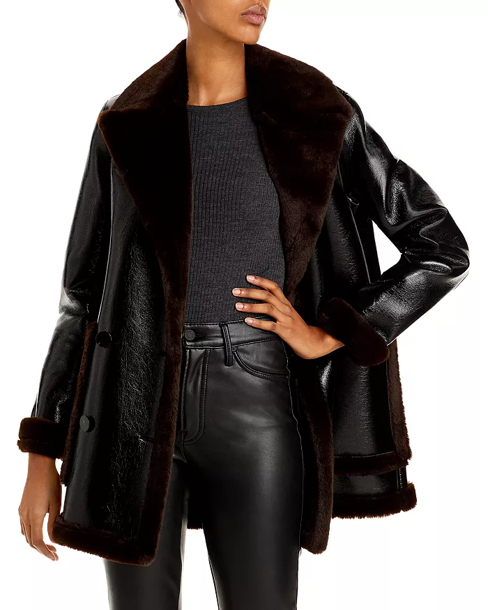 Faux Leather & Faux Fur Peacoat