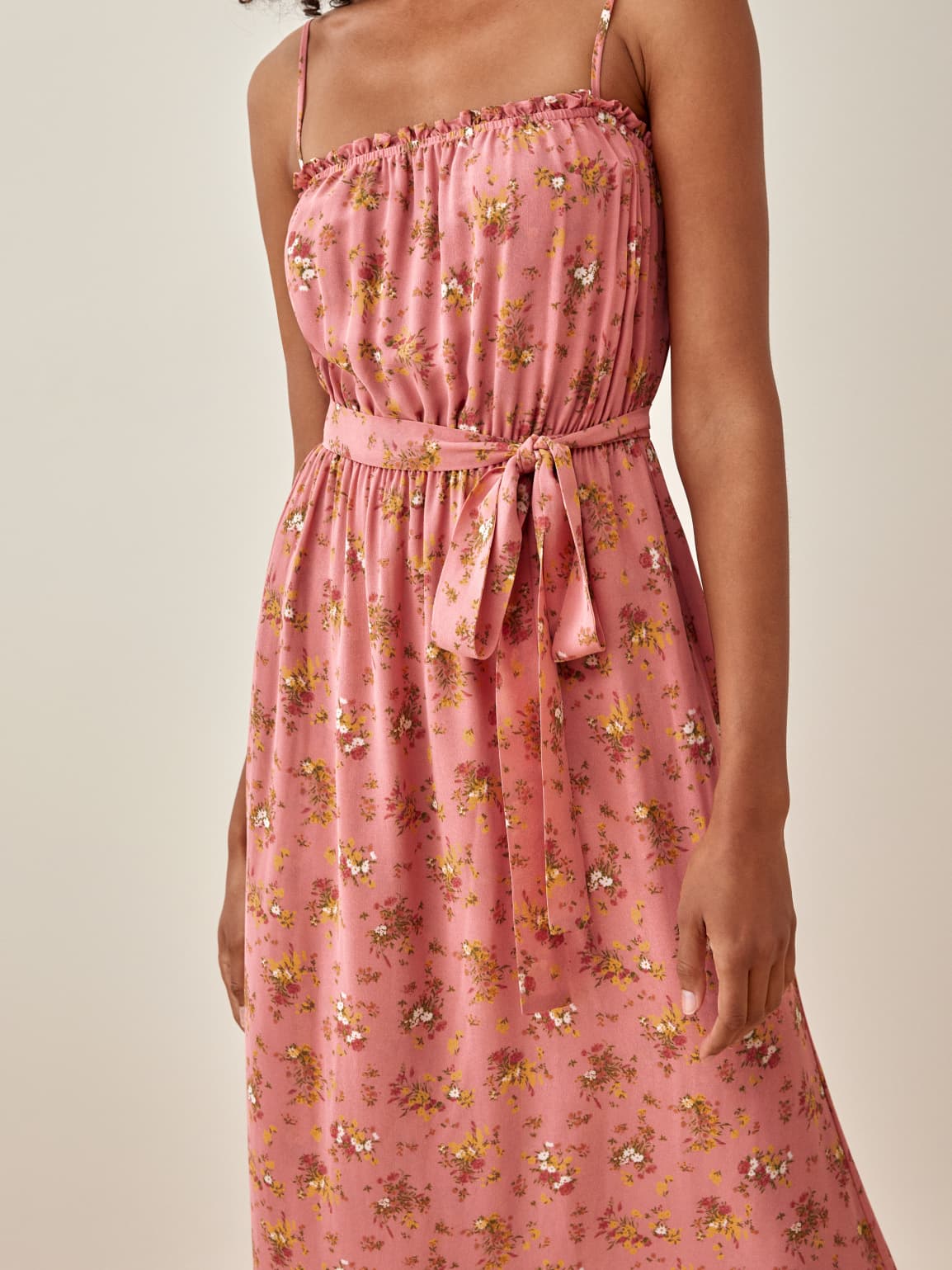 Fresh florals. The Margaret has a relaxed fit throughout with an adjustable waist tie to give your waist some definition. This dress gives you a little shape while maximizing comfort.