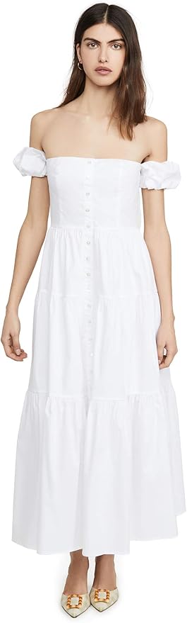 Crafted in crisp cotton and featuring a shoulder-baring silhouette, this swingy STAUD dress is a summer-friendly style that’s ready to soak in some serious sun. Play around with this versatile piece by pairing it with anything from simple slides to pretty pumps.