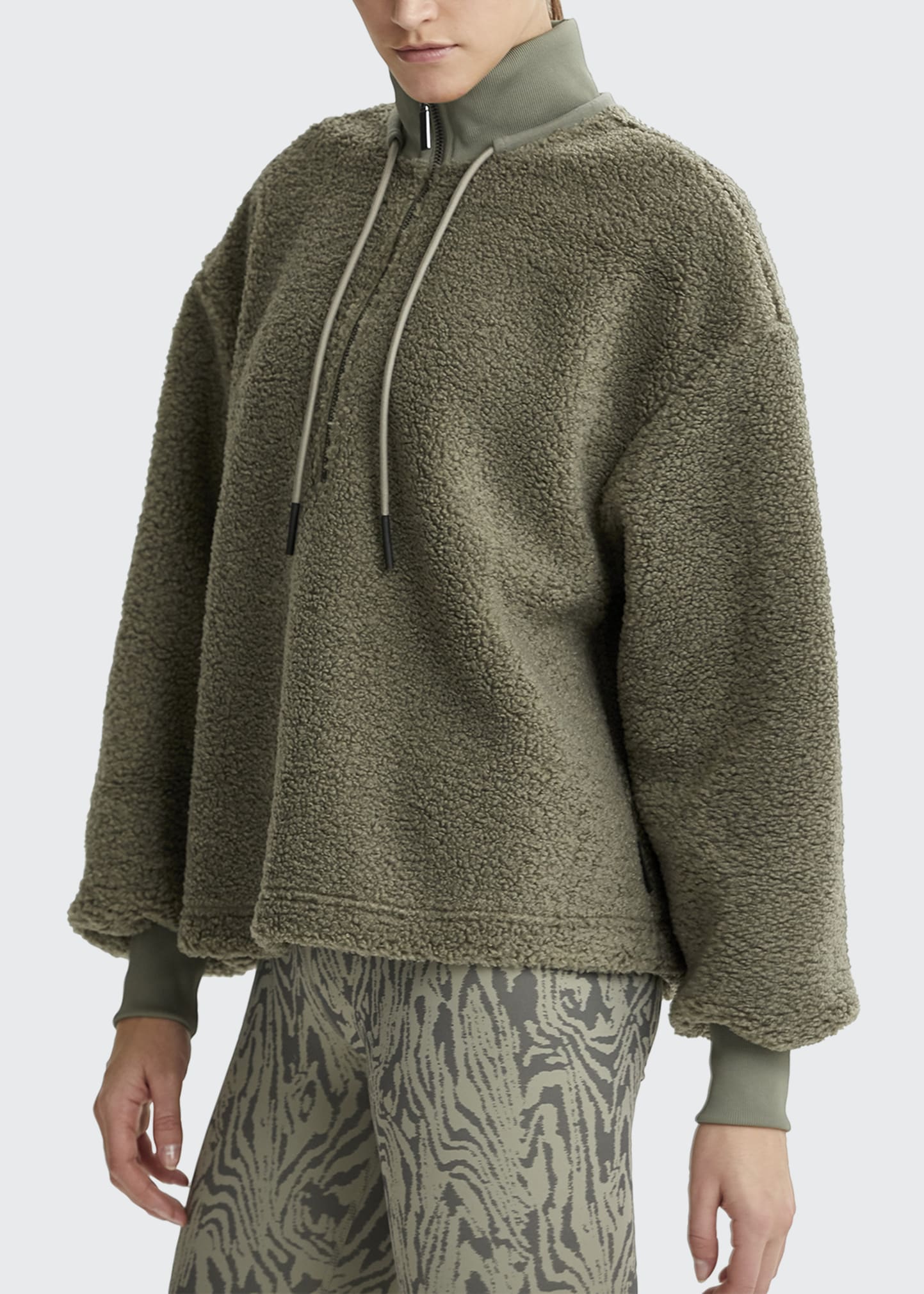 Varley “Berea” high-pile solid sweatshirt. Drawstring stand collar; half zip placket.