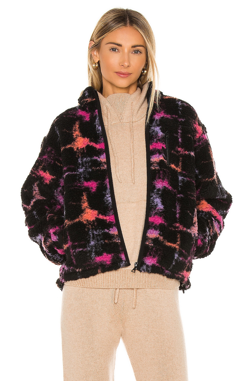 Side seam and breast zipper pockets. Fleece Fabirc