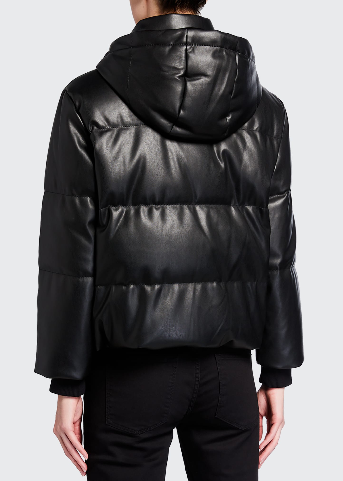 Alice + Olivia “Robinson” quilted faux-leather puffer jacket.