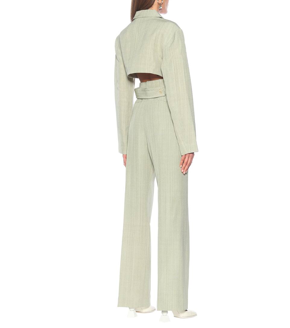 These Le pantalon Santon pants are finished in pale shade of green feature throughout Jacquemus’s FW20 runway show. Made from silk-blend twill to ensure a lustrous finish, they’re cut to a high-rise silhouette with slim legs. Coordinate yours with tonal pieces for a directional look.