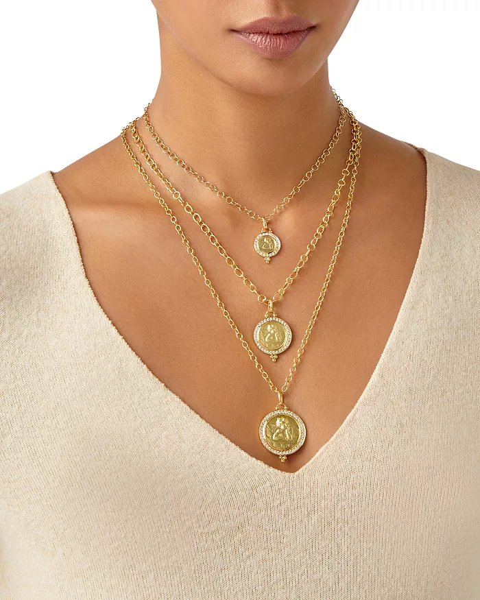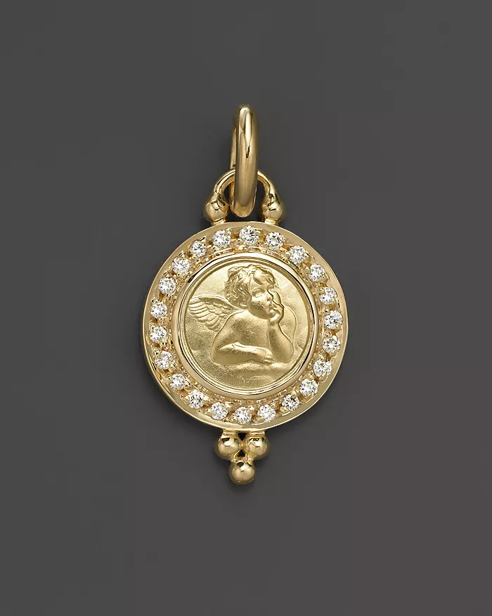 18K Gold 10mm Angel Pendant with Diamond Pavé