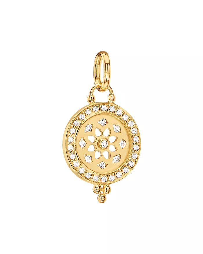 18K Gold Halo Mandala Cutout Pendant with Pavé Diamonds