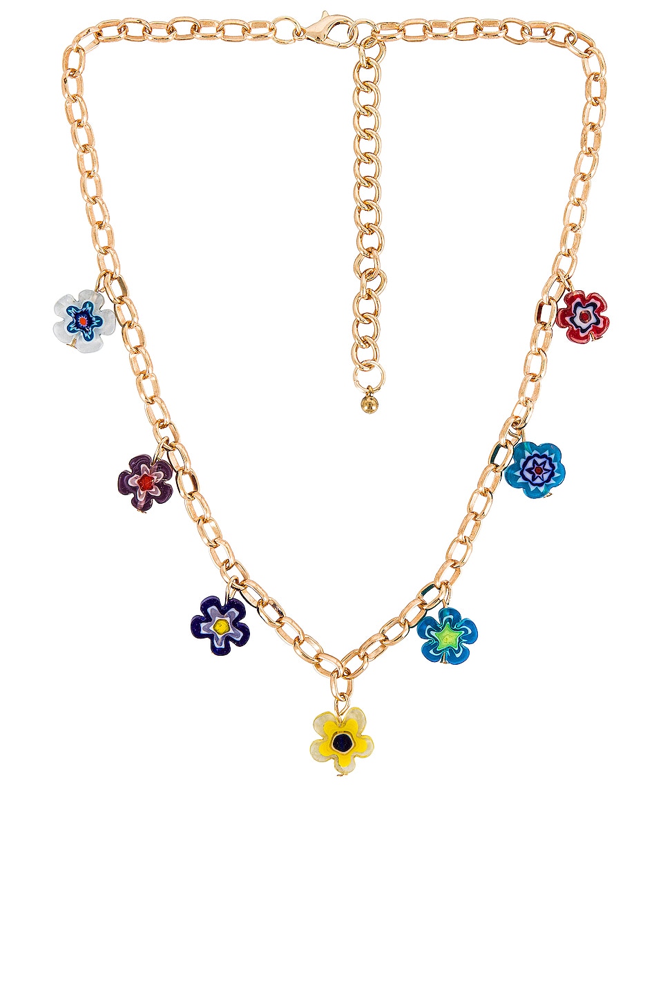 Gold-tone necklace with resin charms, Lobster clasp closure, Charm colors may vary